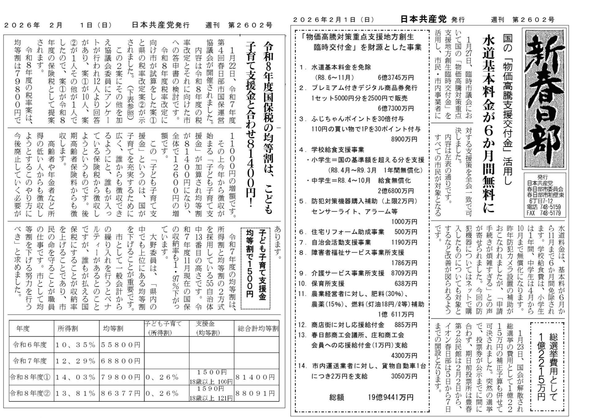 ● 新春日部1/18№2600-4月から小学校給食費無償化(2026年01月19日)